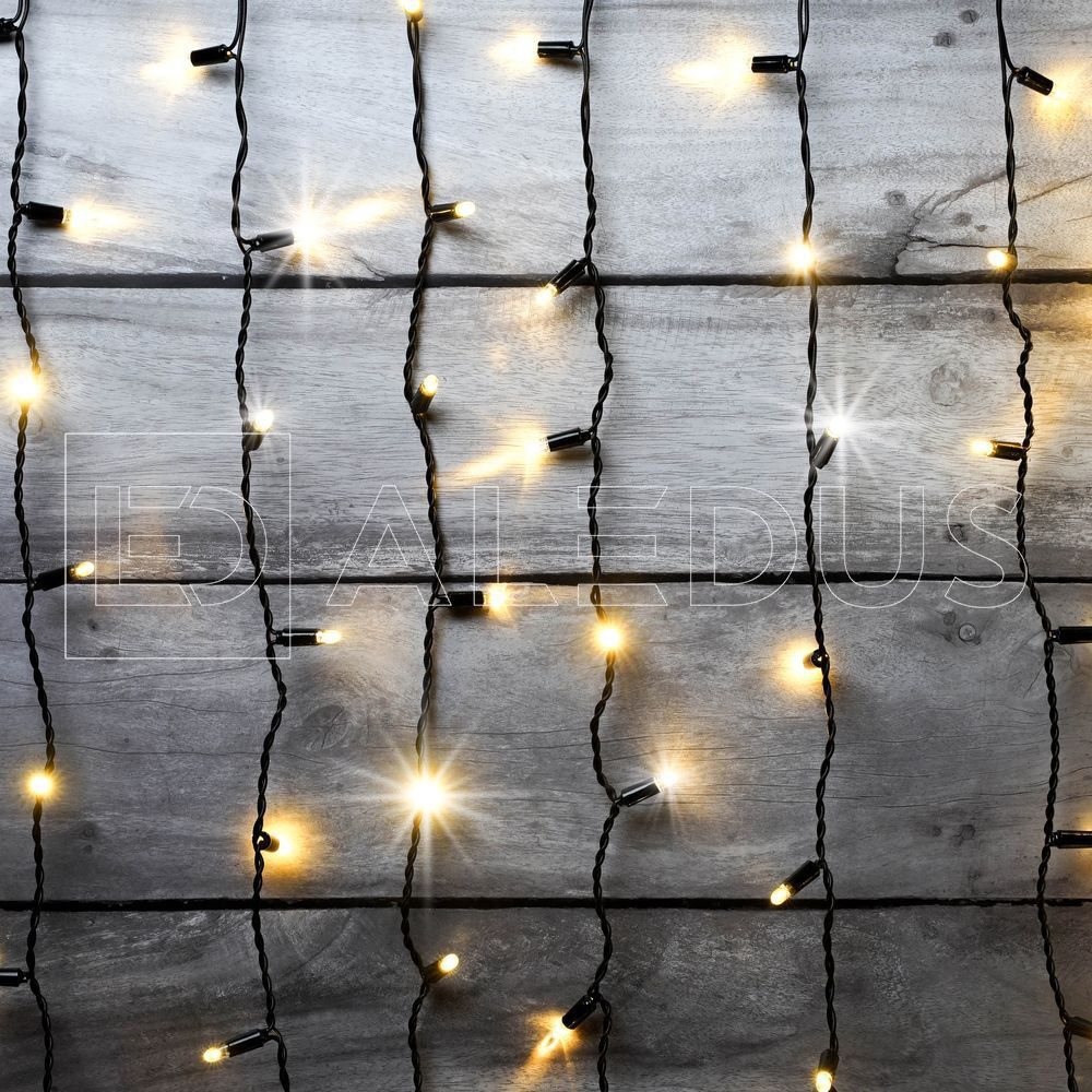 Занавес ALEDUS 2x1.5 м, черный провод, ПВХ, теплый белый, без мерцания