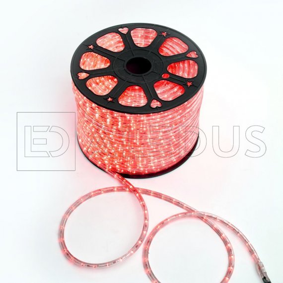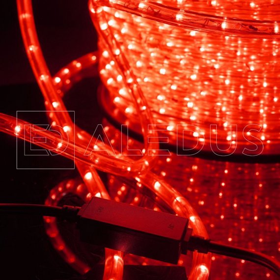 Дюралайт красного свечения на 360⁰ ALEDUS удобно использовать для праздничного, декоративного или рекламного оформления. Так как он обладает гибкостью, прочностью, водонепроницаемостью и стойкостью к температурным перепадам. Красный цвет свечения светодиодов совместно с дюралайтом другого цвета позволит создать сложные объемные световые фигуры, яркие вывески, эффектное оформление витрин магазинов или баров. Поставляется в виде бухты длиной 100 метров.