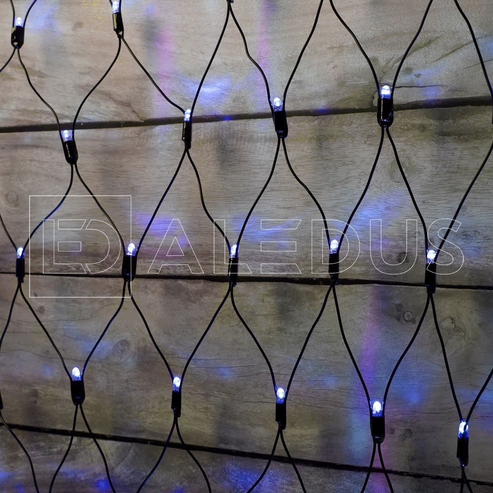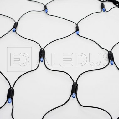 Светодиодная сетка ALEDUS - универсальная гирлянда размером 2.0x2.0 м. Подходит для декорирования фасадов стильной паутиной, небольших кустов и деревьев в парке, потолков. Используют для оформления окон домов и витрин магазинов. Гирлянда такого вида состоит из 264 светодиодных лампочек с синим свечением, собранных в ячейки 15х15см. из черного ПВХ-провода.
