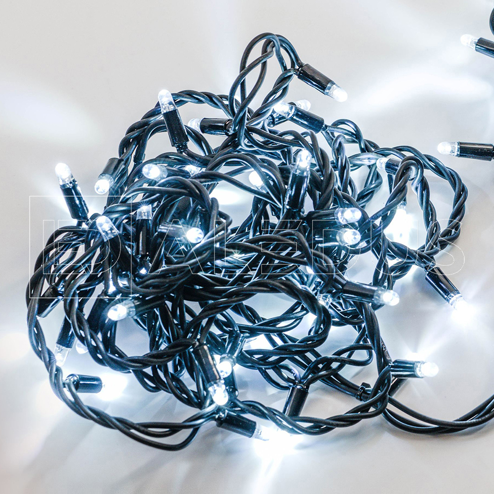 Гирлянда (Нить) ALEDUS 10 м, черный провод, ПВХ, белый, без мерцания